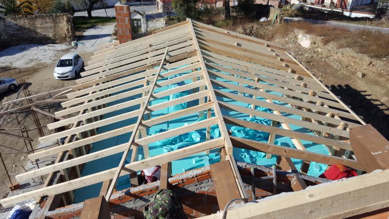 Για τη σωστή κατασκευή μιας ξύλινης στέγης χρησιμοποιούμε πάντα υλικά άριστης ποιότητας όπως η θερμομόνωση και υγρομόνωση έτσι ώστε να μην περάσει υγρασία στο εσωτερικό της οικίας. Η τοποθέτηση της στέγης μπορεί να γίνει σε οριζόντιο όπως και σε κεκλιμένο μπετό καθώς και πάνω σε ξυλοδεσιά.